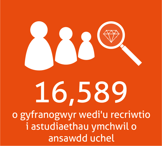 Recriwtiwyd 16,589 o gyfranogwyr i astudiaethau ymchwil o ansawdd uchel